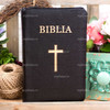 Dimensiune coperta – 22x14.5 cm, dimensiune pagina – 21x13.5 cm, coperta piele, fermoar, culoare neagra, cu cruce, margini aurii cu repertoar.