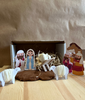 Cutia conține o pungă cu mix de plastilină maro, planșe cu activități și materiale pentru a realiza personajele Maria, Iosif și păstorii, două oițe, un măgăruș, pruncul Isus și ieslea, o stea, un înger și trei fundaluri.